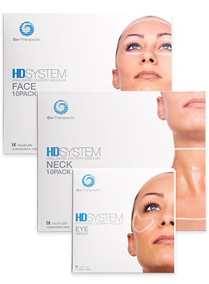 The Hyaluronic Delivery System Masques are infused with ingredients to hydrate, brighten, and calm, while sealing in target products applied beneath. For professional and home care use.