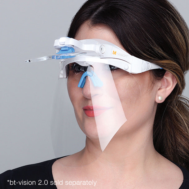 Designed to disappear, and weighing nearly nothing, bt-ishield adds a seamless layer of protection to every service. The bt-ishield accessory for the bt-vision 2.0 retains the fit, feel, and functionality of the bt-vision 2.0 and gains a new level of protection and assurance for the safety of your team and clients.